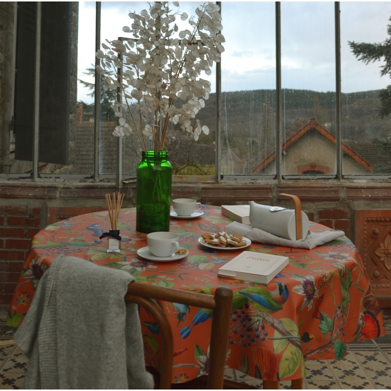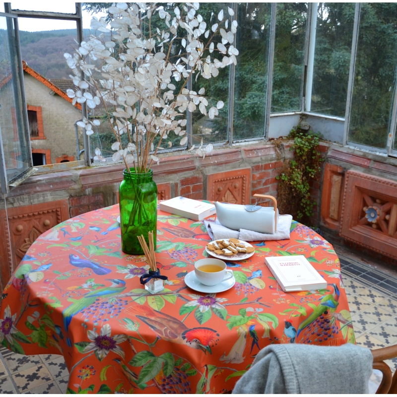 Die Vögel beige Tischdecke ist verfügbar in Rund oder in Oval