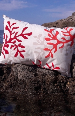 La collection Corail prend des airs d'un tableau de Matisse. On y voit des formes abstraites ou bien des coraux pour un esprit bord de mer moderne et original. Le motif Corail est également décliné en bleu