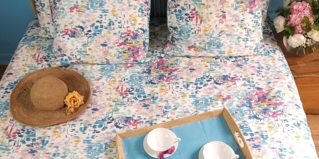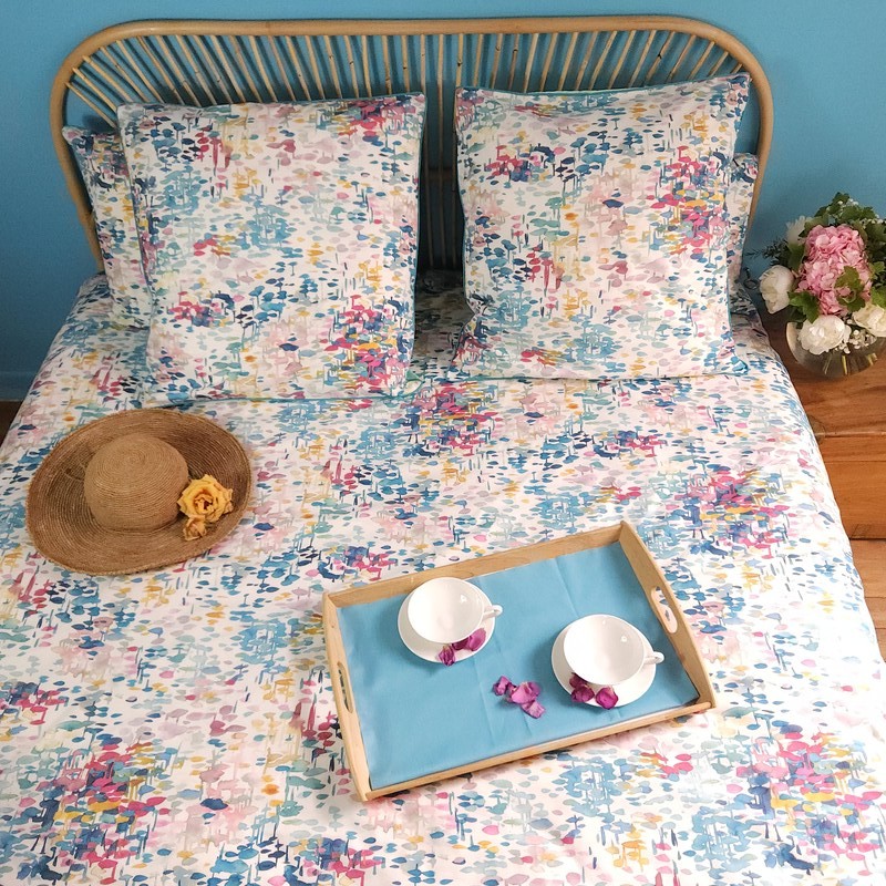 La federa Fleur de Soleil è realizzato in percalle di cotone tessuto nella regione dei Vosgi in Francia. La sua trama di 80 fili/cm² le conferisce una morbidezza ineguagliabile.