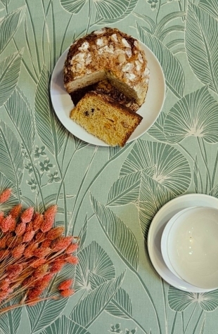 Groen jungletafelkleed gecoat katoen gemaakt in de Vogezen 100% gemaakt in Frankrijk